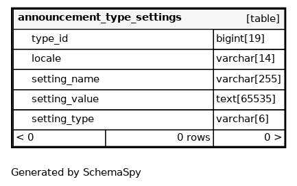 | announcement_type_settings_pkey | Must be unique | Asc/Asc/Asc | type_id + locale + setting_name |
