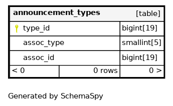 | announcement_types_assoc | Performance | Asc/Asc | assoc_type + assoc_id |