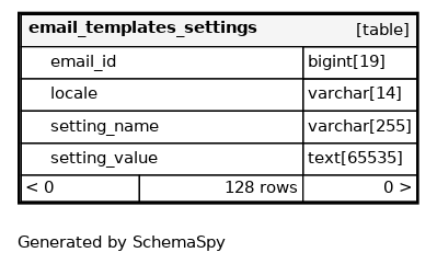 | email_settings_pkey | Must be unique | Asc/Asc/Asc | email_id + locale + setting_name |