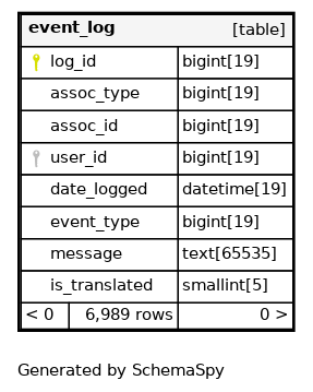 | event_log_assoc | Performance | Asc/Asc | assoc_type + assoc_id |