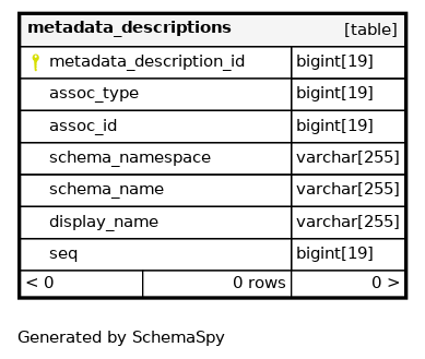 | PRIMARY | Primary key | Asc | metadata_description_id |