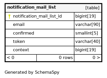 | notification_mail_list_email_context | Must be unique | Asc/Asc | email + context |