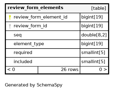 | PRIMARY | Primary key | Asc | review_form_element_id |