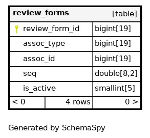 | Column | Type | Size | Nulls | Auto | Default | Children | Parents | Comments | ||||||||||||