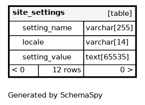 | site_settings_pkey | Must be unique | Asc/Asc | setting_name + locale |