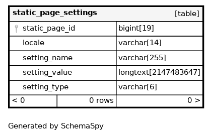 | static_page_settings_pkey | Must be unique | Asc/Asc/Asc | static_page_id + locale + setting_name |