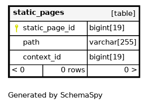 | PRIMARY | Primary key | Asc | static_page_id |