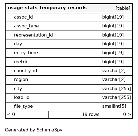 | Column | Type | Size | Nulls | Auto | Default | Children | Parents | Comments |